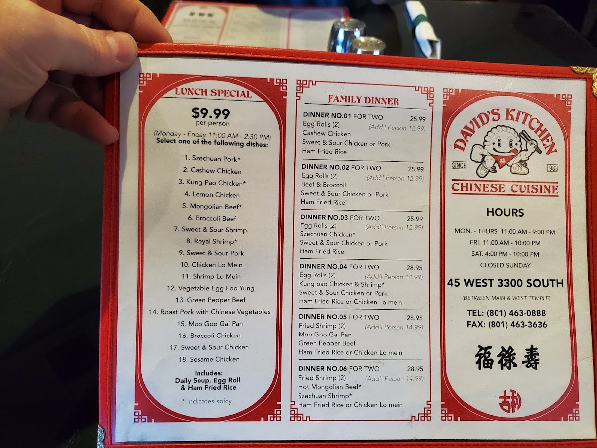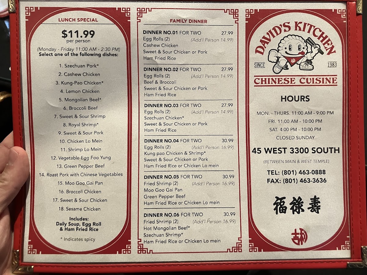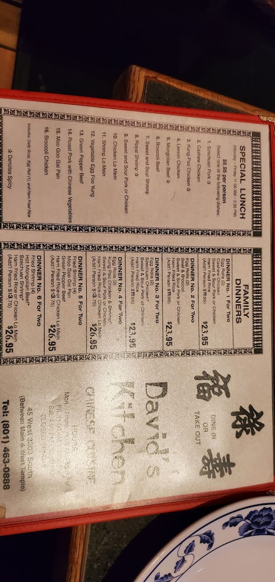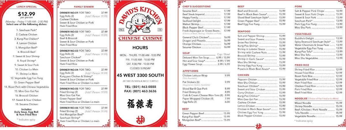 David's Kitchen Menu